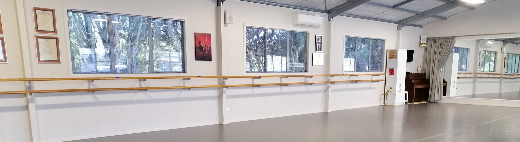 Our facility comprises two studios, one of which is 18metres x 12metres and the other 12metres x 8metres. Both studios have specialised wooden sprung floors as well as barres, mirrors and air conditioning.